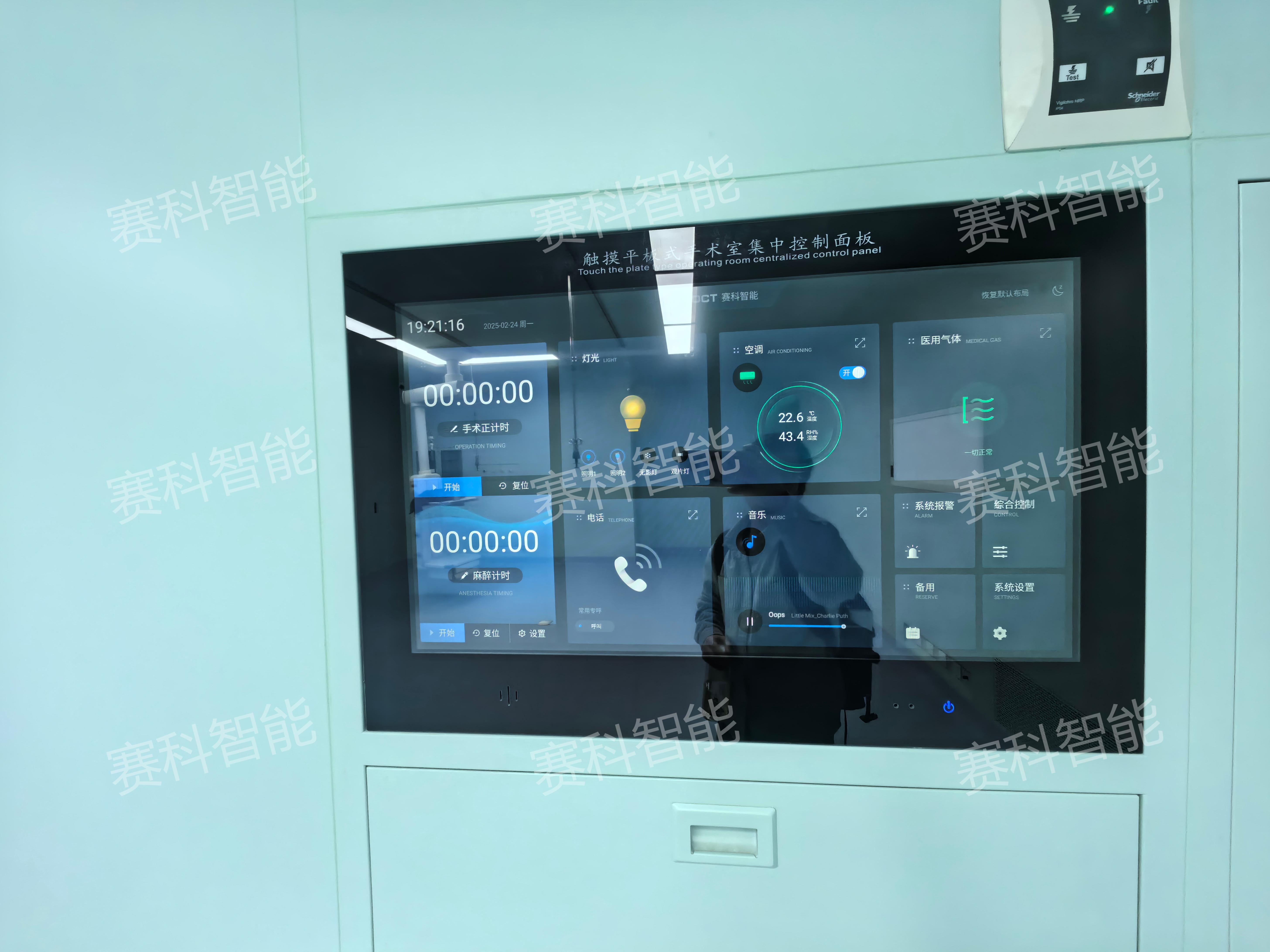 集中可視化操作: 在手術(shù)室內關(guān)鍵位置安裝大尺寸、高亮度觸摸液晶控制面板,提供清晰、直觀(guān)的圖形化操作界面。